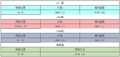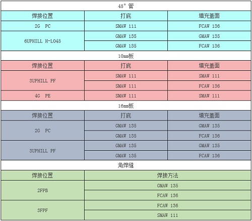 组合件包含管、10mm板↖️、16mm板和角焊缝四个试件♣️。焊接完成后进行外观检查、折断检验😋、射线探伤。四个试件的焊接方法和焊接位置在赛前从下表中抽取确定。