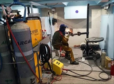 该试件母材为低碳钢💡,焊接方法采用了焊条电弧焊(SMAW111)、熔化极气体(CO2+Ar)保护焊(GMAW135)、熔化极气体(CO2+Ar)保护药芯焊丝电弧焊(FCAW136)、钨极氩弧焊(GTAW141)四种焊接方法😔,共计41条焊缝👐🏻,包含了所有焊接位置和接头类型🧙🏽。焊接完成后进行外观检查和水压试验。