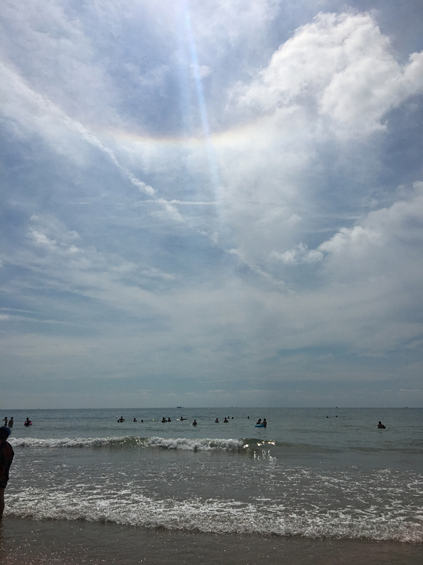 到青岛🧘♀️,最不容错过的就是阳光、沙滩、水中畅游啦✶!来到石老人海水浴场,放眼望去是蔚蓝色的海洋,万里的长空飘着洁白的云朵,远处天空还出现了彩虹👩🏻🦽➡️2️⃣。