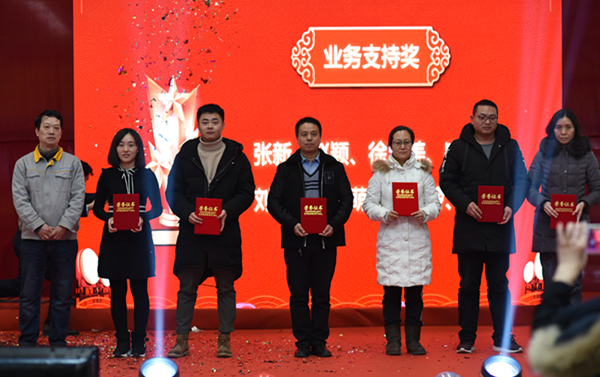 产业年会“颁奖典礼及迎新年会”在12日下午如期而至。焊机制作部首秀群舞《恭喜发财》。那红火💦、热烈、吉祥的气氛立即嗨遍全场👨👧👦。时代各部门纷纷派出了自己的文艺明星登台献技。他们将各自的才艺及特长与公司文化相融合为时代同仁呈现了一场热闹、欢快的演出🥼⟹。随着一浪高过一浪的微信抽奖活动,联欢会现场达到沸点。一年一度的颁奖活动穿插在联欢活动中逐一展开。一位位时代精英从领导手中接过令人艳羡的荣誉,这是时代对辛勤劳动者的肯定和赞誉。联欢会最后一曲合唱《明天会更好》表达了全体时代人对2019年的憧憬和渴望。时代科技2018年年终总结会暨2019年工作计划会在响彻四方的嘹亮歌声中落下帷幕。