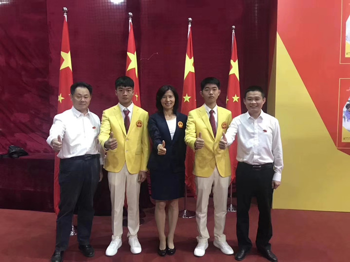 第45届世赛焊接赛项寒冠军赵脯菠和专家合影
