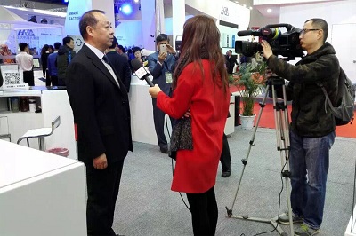 时代刘总正在接受央视电视台采访,济南电视台全程跟拍时代集团展位。