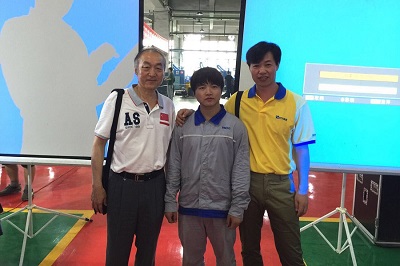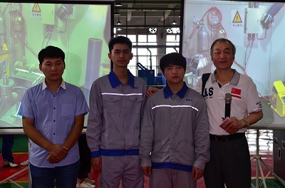 4:时代首席高级技师(右)与焊接专家(左)🛑、世界冠军曾正超(中)